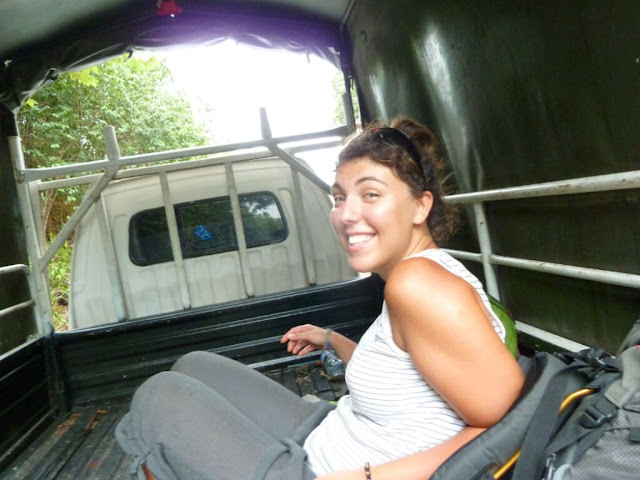 En nous réveillant ce matin, nous avons la mauvaise surprise de découvrir la pluie. Qui plus est, Nee nous parle des treks qu’organisait Rajan et nous réalisons qu’ils n’ont rien à voir avec celui proposé par le resort. Du coup, nous décidons d’annuler et changeons un peu nos plans. Alors que nous pensions rester une nuit de plus ici, nous sommes repartis à Kuantan. Demain, nous essayerons de visiter un peu la ville et de faire quelques achats avant de repartir à KL vendredi matin pour prendre notre avion direction Bali, en fin d’après-midi. Le chemin jusqu’à l’arret de bus de Chini, à l’arrière d’une camionnette aura été assez folklorique !