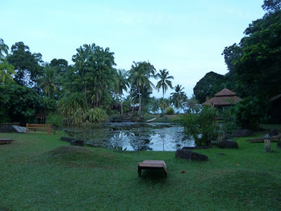 Nous trouvons finalement notre bonheur à la Villa de Fedelia, où des chalets très bien entretenus sont lovés au coeur d’un jardin verdoyant et  d’un petit étang, tout ça à deux minutes à pied de la mer. Le lieu est tenu par une famille dont le fils, notre principal interlocuteur est extrêmement doux et aime passer du temps à discuter avec ses hôtes.