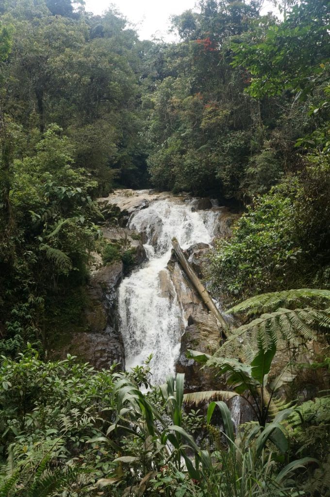 C’est la première fois depuis le début de notre séjour que nous nous trouvons dans une jungle aussi luxuriante, humide, riche en végétation multiple. En chemin, nous pouvons admirer une cascade gorgée d’eau (sacré contraste par rapport à celles du Laos ou de Thaïlande), des plantes énigmatiques et toutes sortes de champignons. De plus nous sommes totalement seuls, ce qui ajoute au charme de la promenade. Par moment, la nature reprend ses droits sur le sentier et il faut alors escalader des troncs ou des rochers glissants. Une chose est sûre, il ne faut pas avoir peur de se salir ou de se casser un ongle! Et cela devient d’autant plus vrai lorsque l’escapade tourne à l’aventure.