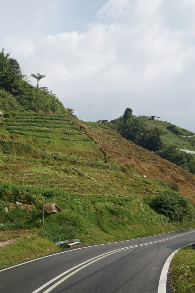 Malgré la galère nous sommes ravis et repartons gaiement sur la route, afin de rejoindre Tanah Rata. Autour de nous, des plantations de thé, des fermes et des travailleurs règnent en maîtres au milieu des montagnes. Le soleil montre même le bout de son nez.