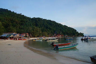Après un trajet en « speed boat » ébouriffant, nous posons le pied sur Perhenthian Kecil, à Coral Bay, où le calme règne encore vu qu’il n’est que 7h30. Il est déjà aisé de voir qu’il s’agit d’une vraie île, où personne n’est pressé par le temps. En effet, lorsque nous étions arrivés à Koh Tao en Thaïlande, tous les rabatteurs nous étaient tombés dessus pour nous vendre leurs hôtels. Ici, impossible de trouver une réception ouverte et il aura fallut attendre une bonne vingtaine de minutes avant de pouvoir visiter un bungalow. La deuxième guest house aura été la bonne et nous posons nos gros sacs au Maya, avant de nous effondrer jusqu’à midi.